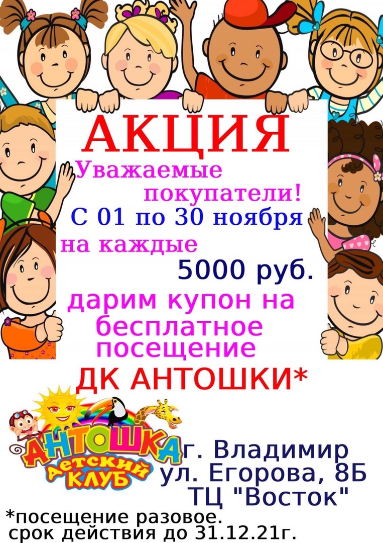 Спасибо за такую замечательную акцию! Купили абонемент детям,с удовольствием будем ходить,веселиться и играть! Дети в восторге!