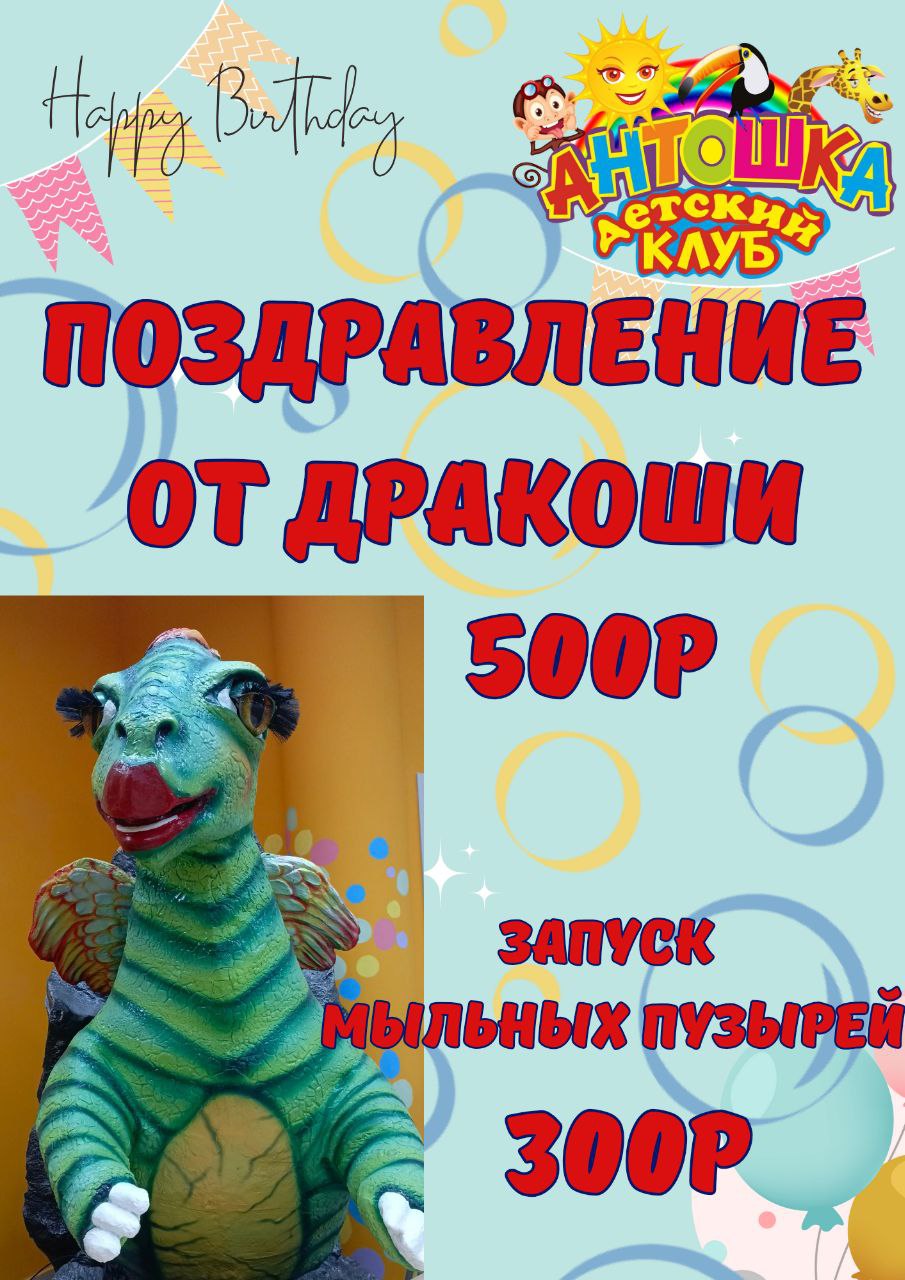 Спасибо детскому клубу Антошка! Заказывали день рождение сына. Аниматоры были на высоте! Обязательно придем еще!