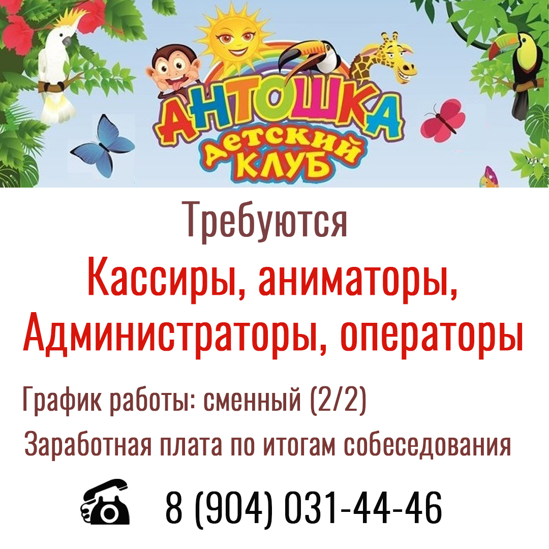 В Детском Клубе "Антошка" открыты вакансии. Требуются кассиры, операторы, администраторы, аниматоры